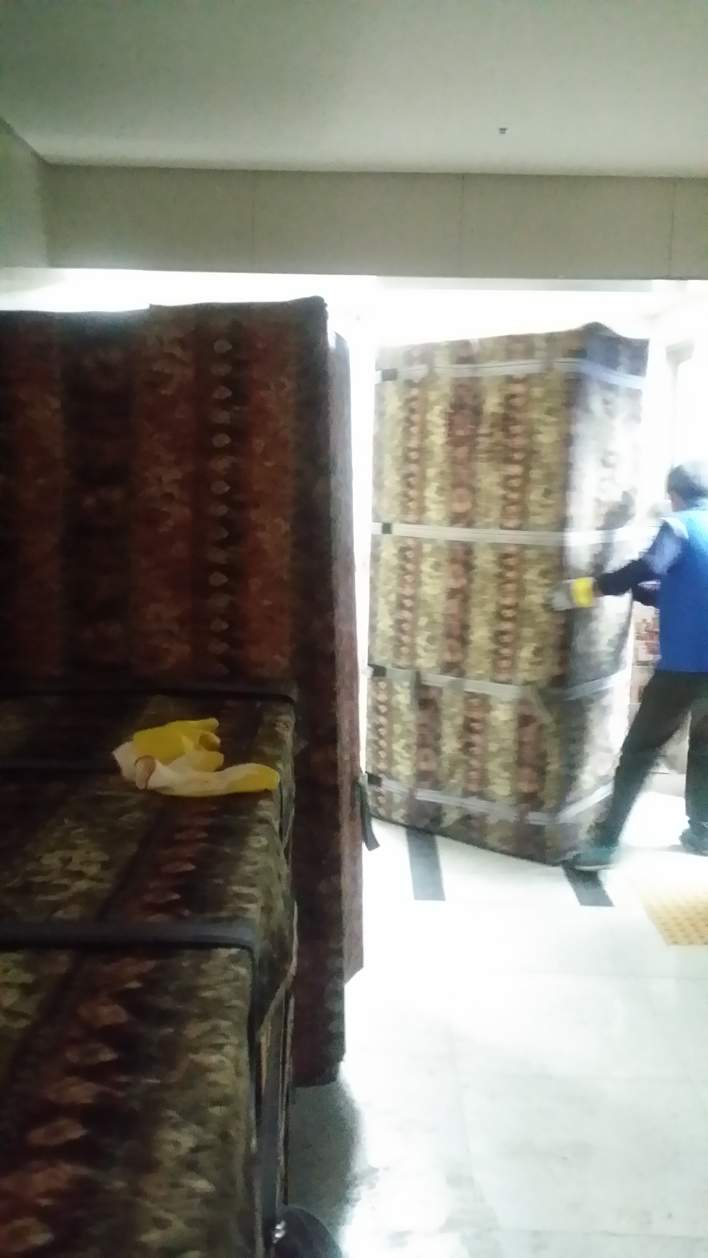 저희들은 전용카바로 가구및 양문형 냉장고 .식탁 등등 포장및 제배치를 하였습니다...