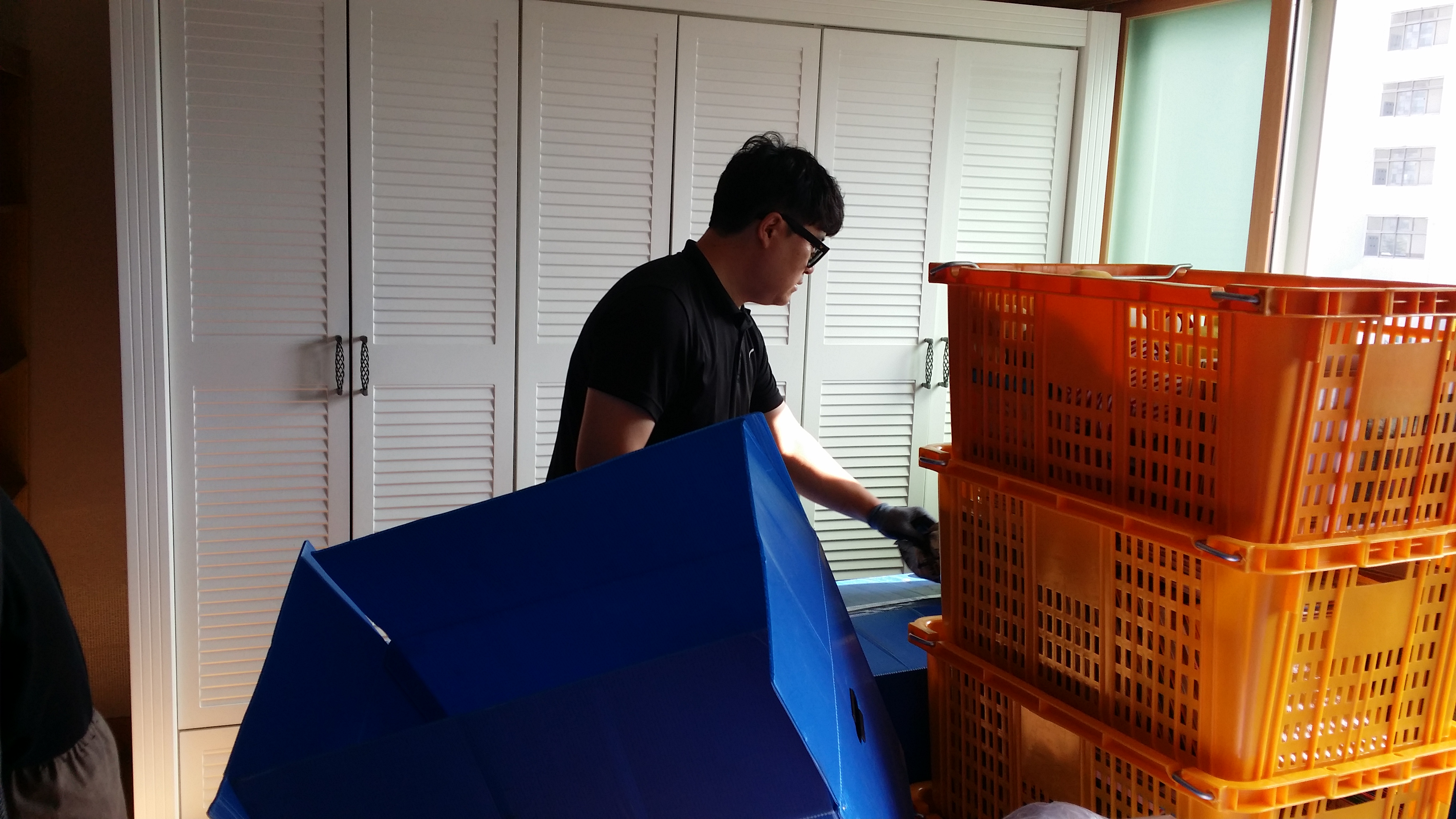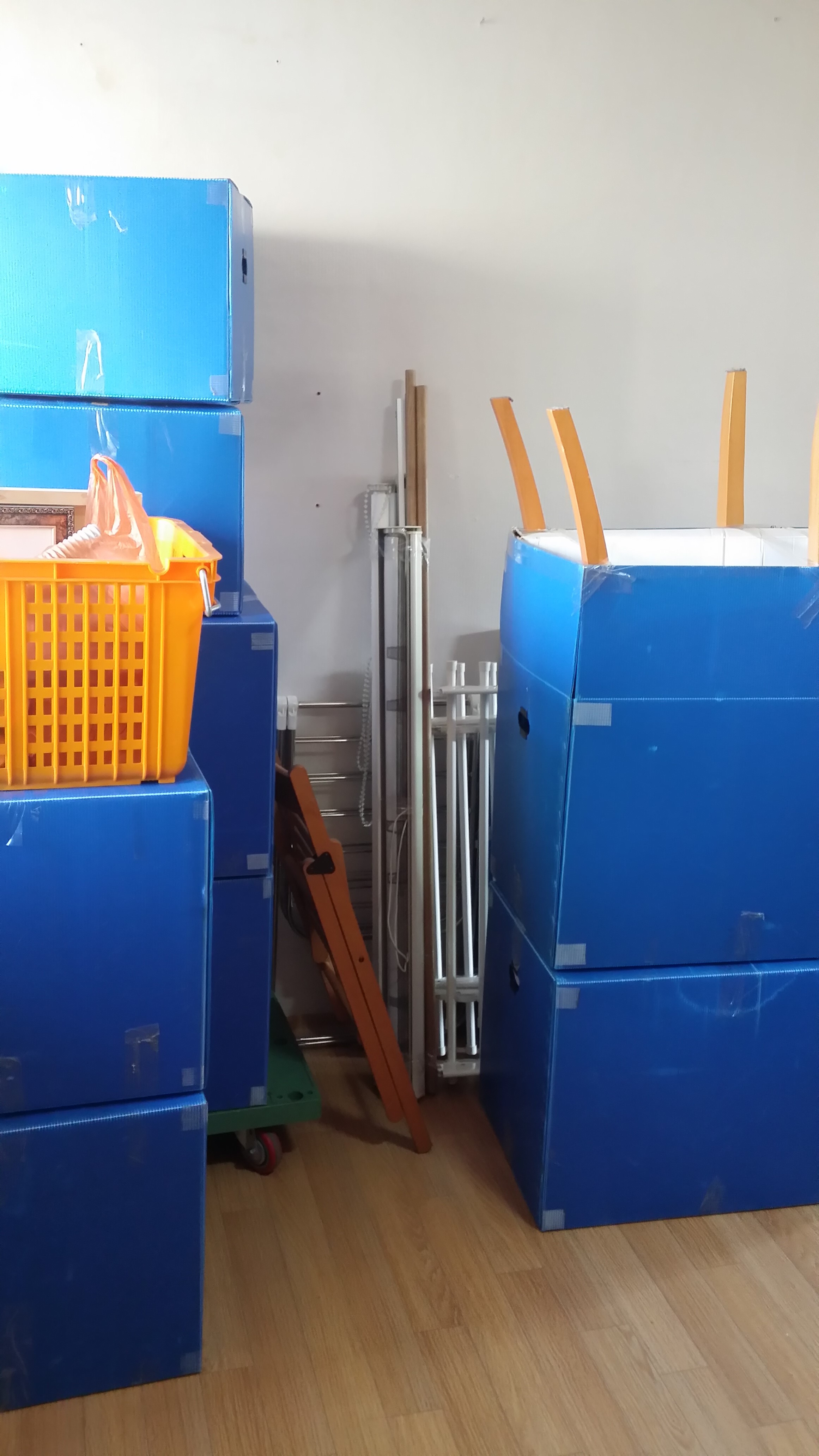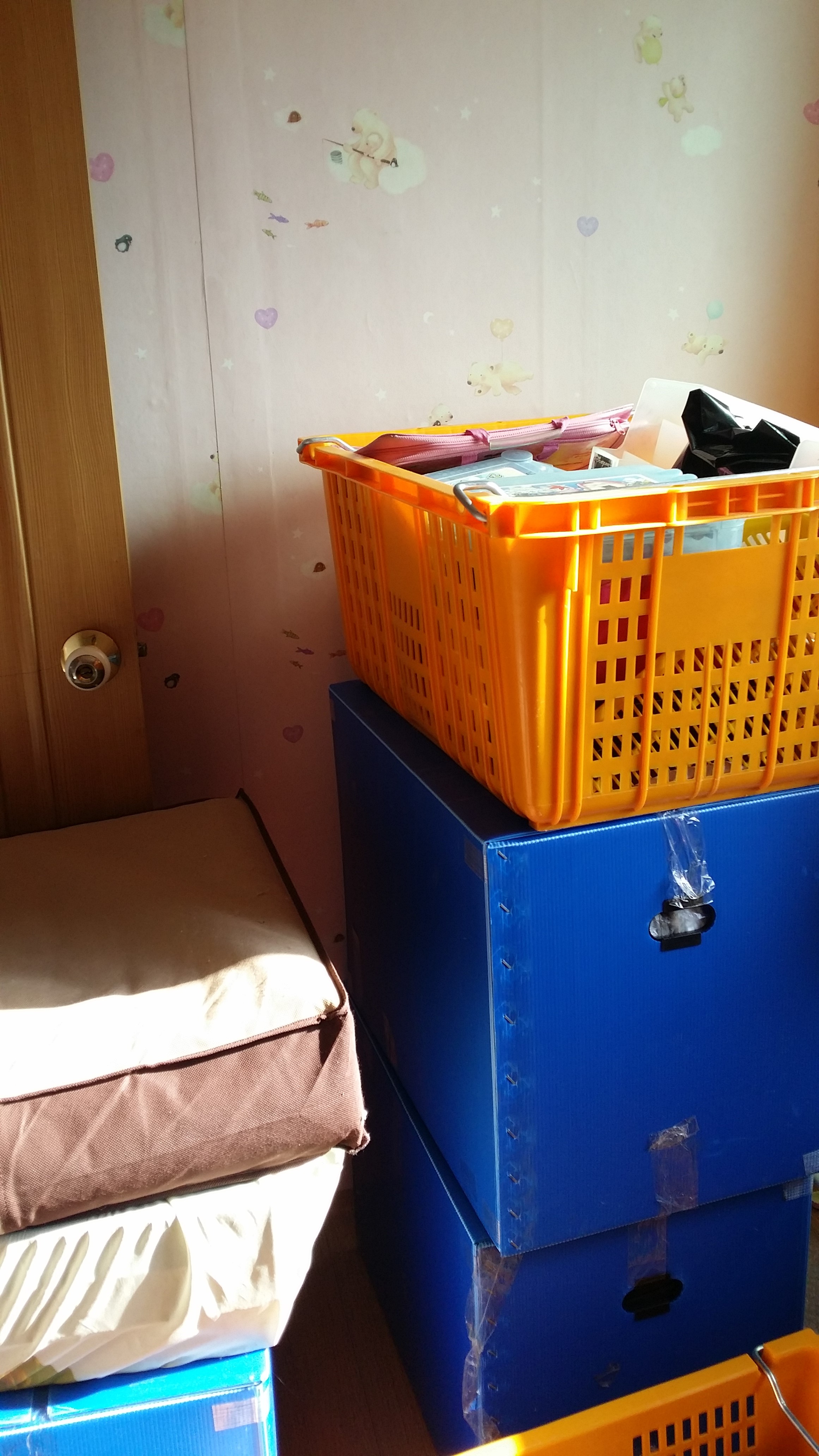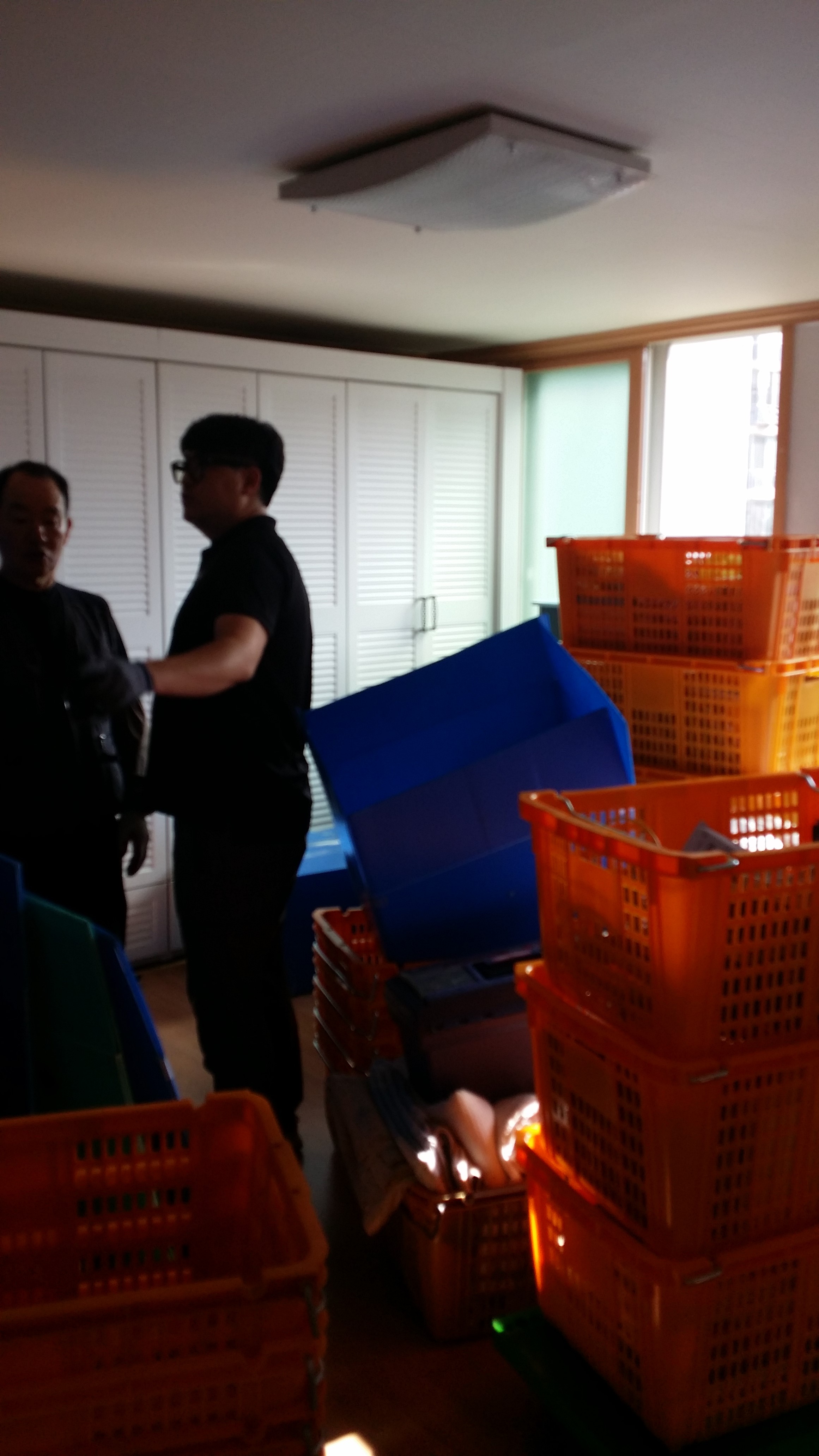 옷가지와 주방용품은 이사박스. 바구니에 담았습니다..
