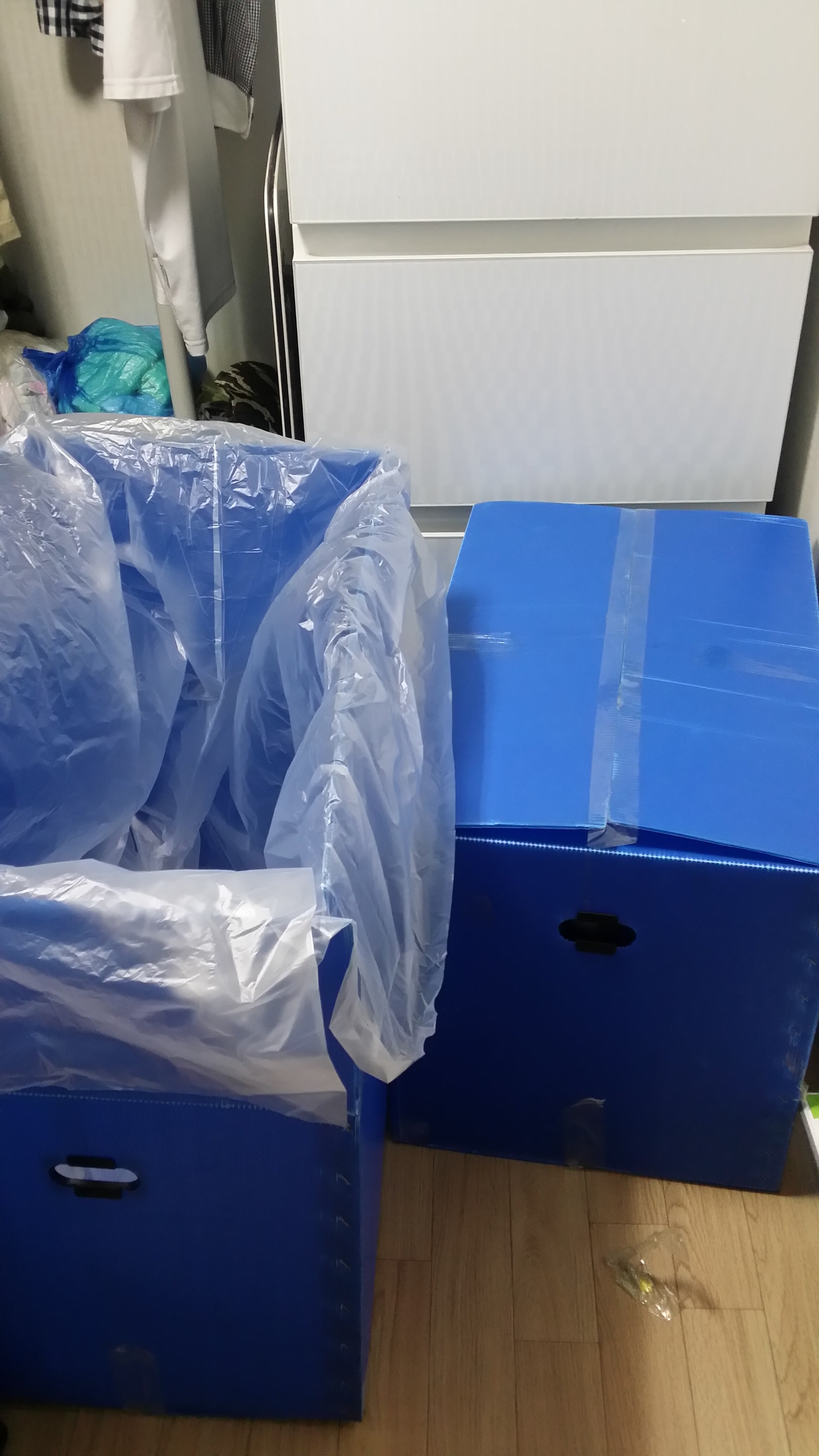 고객님들이 가끔씩 여쭤보는 것이 있습니다..분명히 포장할때는 큰 비닐이 안 보였는데 새로운 보금자리에 가면 옷비닐이 무엇인지 여쭤봅니다.. 그것은 저희들이 옷박스를 포장하기 전에 박스안에 1회용 비닐을 넣고,그 안에 옷가지를 넣기 때문입니다... 그렇게 하면 옷이 오염될 염료도 없을뿐더러, 고객님들이 정리하시기 편하기 때문입니다..^^*??????????? 포장하는 순서를 보여드릴께요... 1.옷 박스와 비닐을 준비합니다.. 2.박스안에 비닐을 한 장 넣습니다...