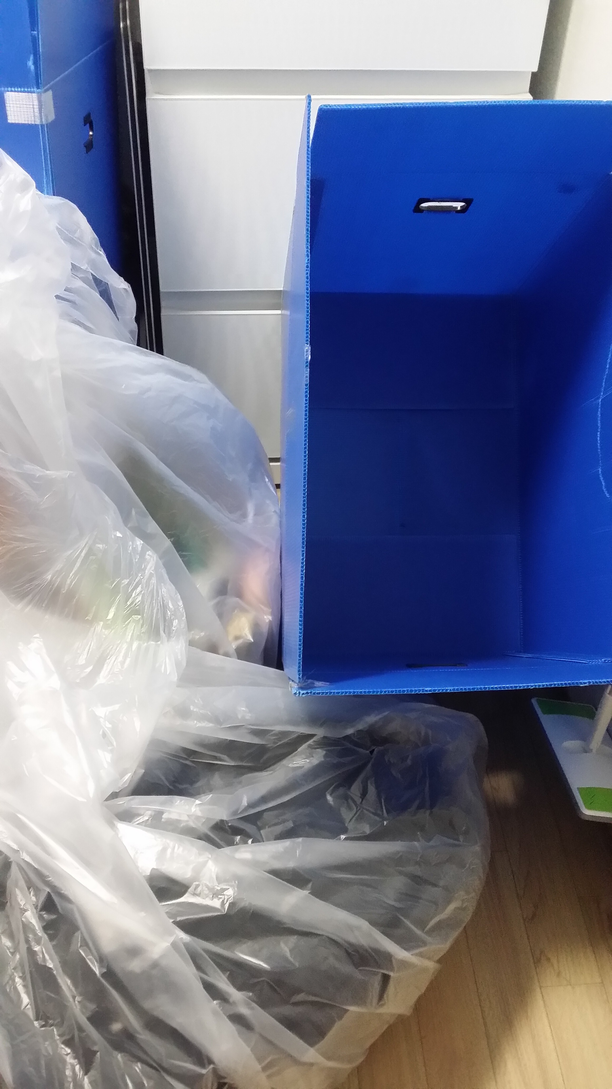 5..또 다른 박스를 준비하고,옷 비닐을 넣습니다..